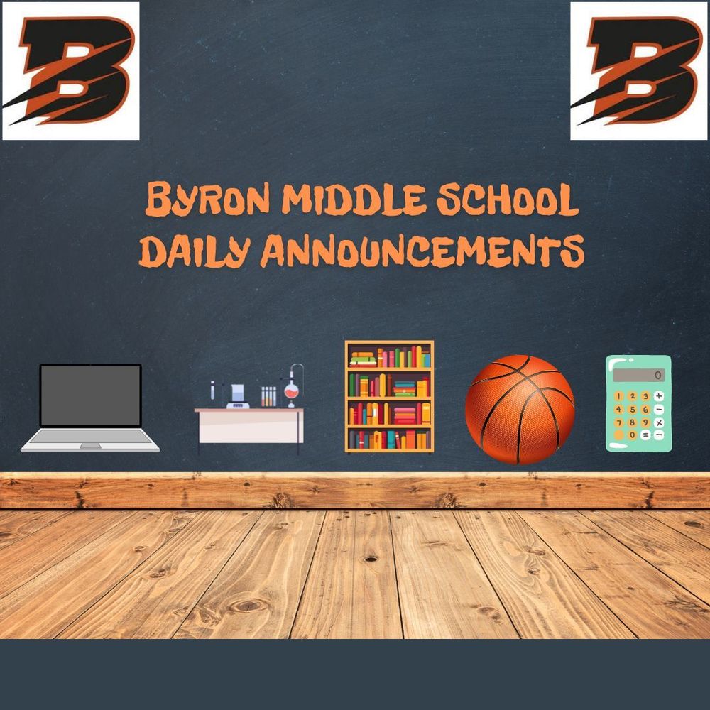 Builder’s Club week is THIS week, students at Byron Middle School are invited to share in dress up days to celebrate: Today, Wednesday - Wear Blue; Thursday - PJ Day! 7th and 8th...